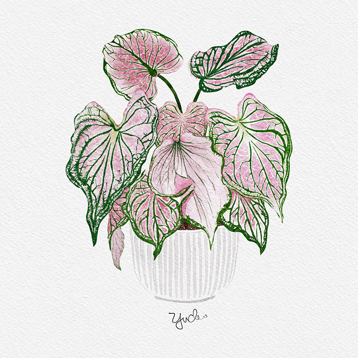 星點秋海棠算是容易照顧的室內觀葉植物,是款初次見面可能不會很愛,但是會越看越喜歡的一款植物。他的葉子表面呈現藍綠色、帶著銀白色斑點、背面則是紅色。畫星點秋海棠時,最療癒的部分就是就是最後點上白點的過程了!一顆顆點上白點真是讓人心情好~
