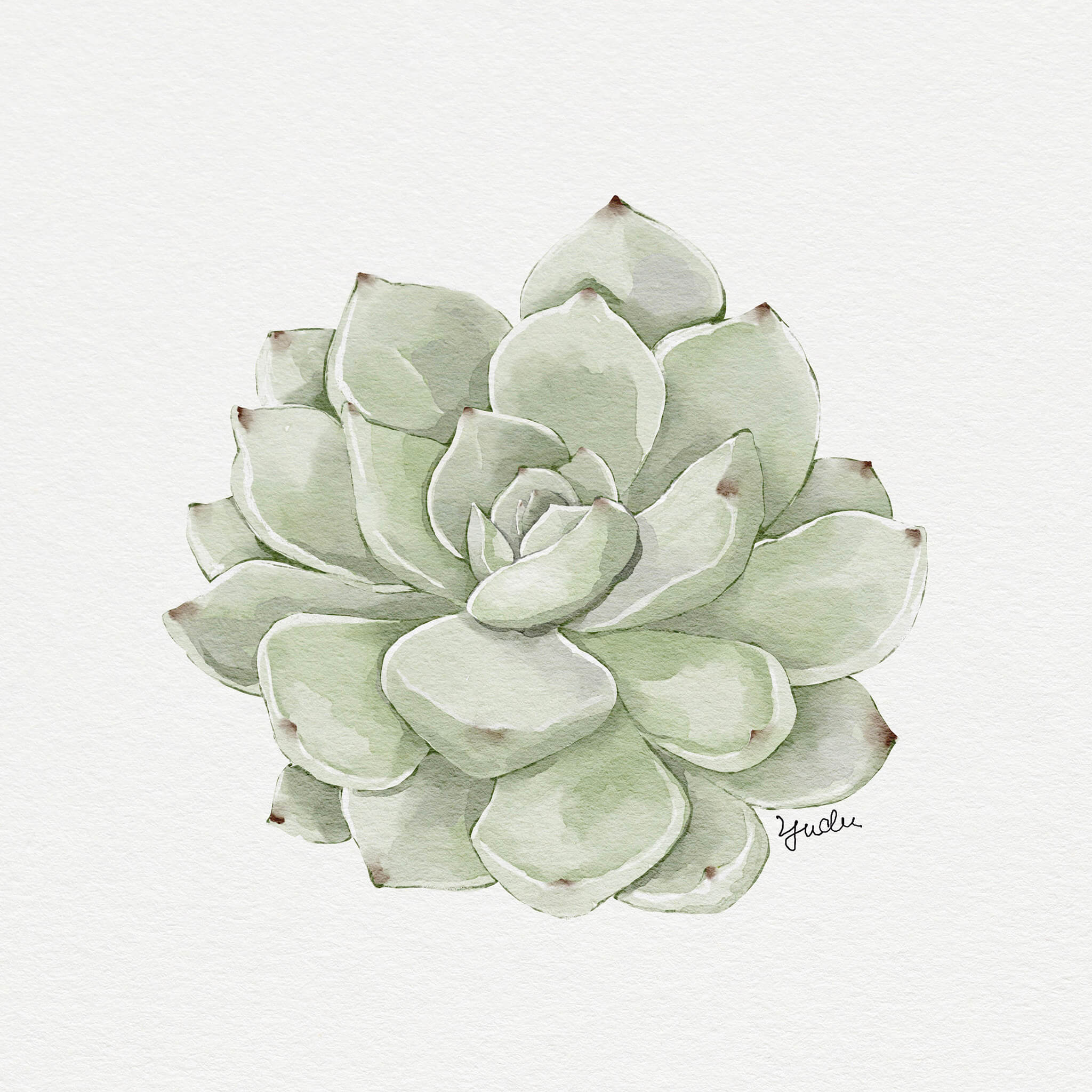 這款多肉植物是走比較低彩度的路線,整幅作品看起來是舒適的顏色。畫多肉植物的時候,如果能畫出亮面與暗面,正確描繪出多肉的厚度。還有尾端一點點咖啡色的點綴,這樣多肉就會很美喔!